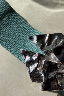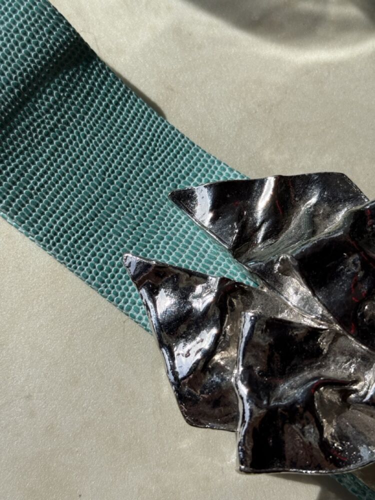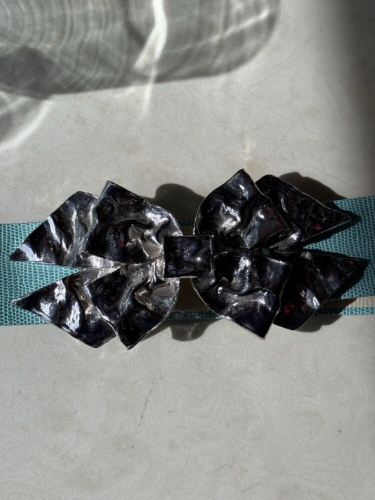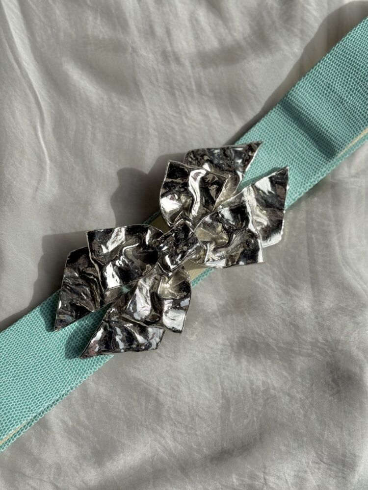 Vintage 1980s Mimi D. In Shiny Metal Crinkle Bow Belt Buckle Belt