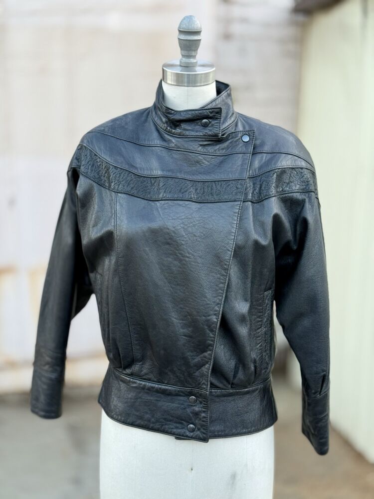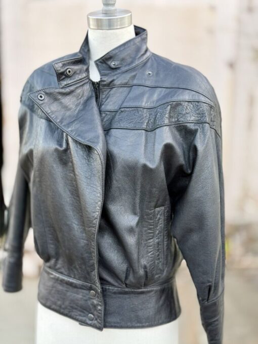 Vintage from the 1980s Leather Racer Moto Jacket by Deluxe Leather. Fully Lined With Shoulder Pads and Two Front Pockets