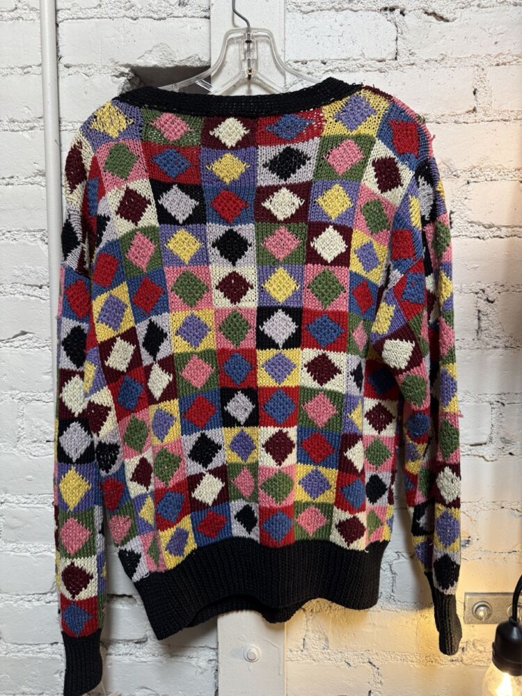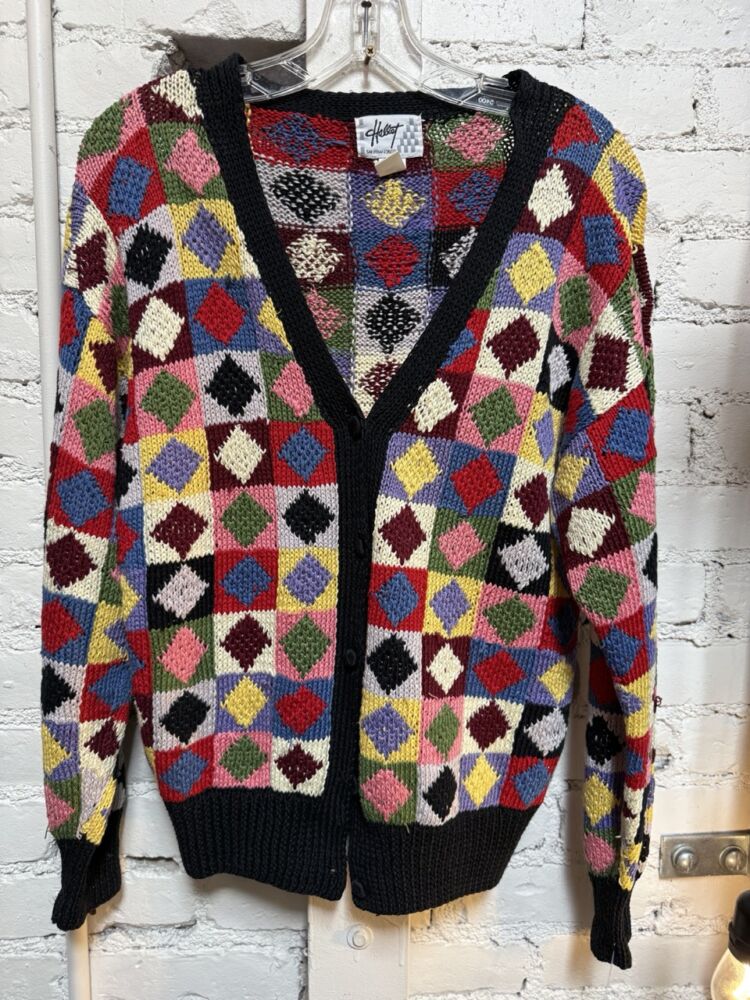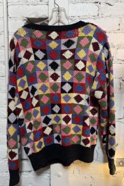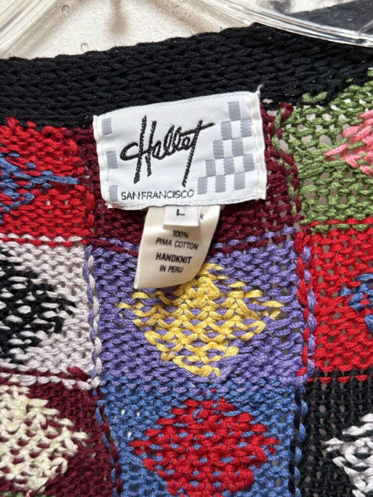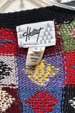 Vintage from 80s, Colorful 100% Cotton Yarn Knit in Checkered Pattern by Hallet San Francisco