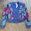 Vintage from 1980s By Jeanne Marc. Cut in a Wrinkle Treated Shiny Silver Fabric, 3 knot button closure. Abstract shaped aluminum buttons at. cuff. Relaxed fit, labeled size 8/10 S. Will fit up to XL