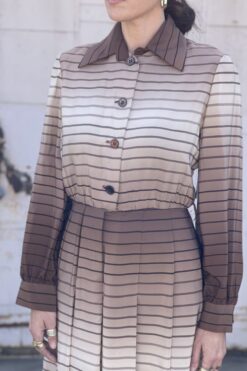 Stunning 50s 100% silk shirtwaist dress with a unique ombre gradient effect.