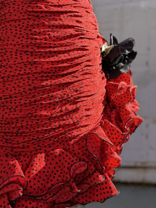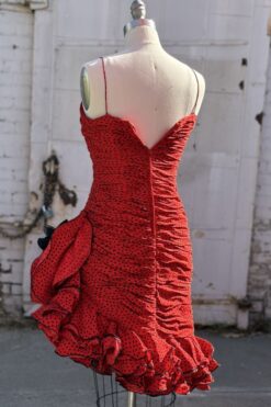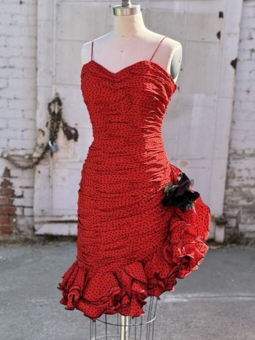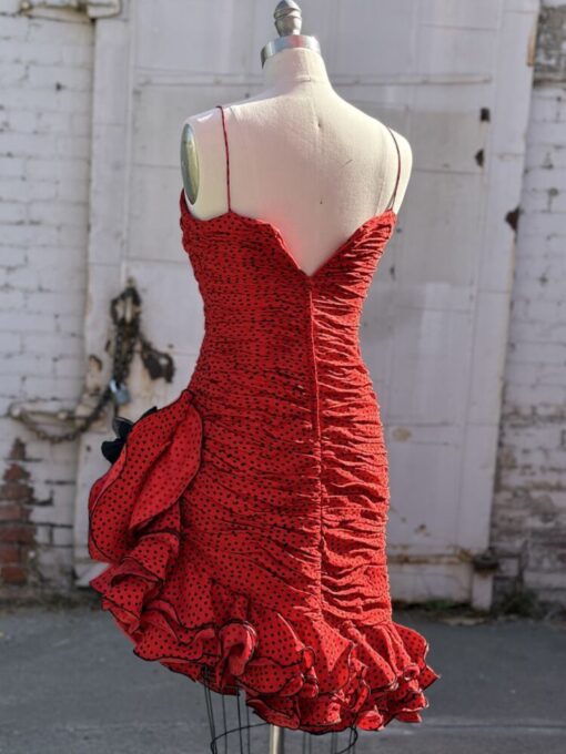 80s Raul Blanco Red Ruffle Polka Dot Dress S