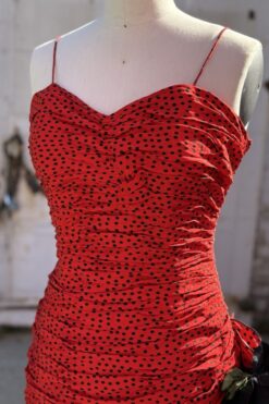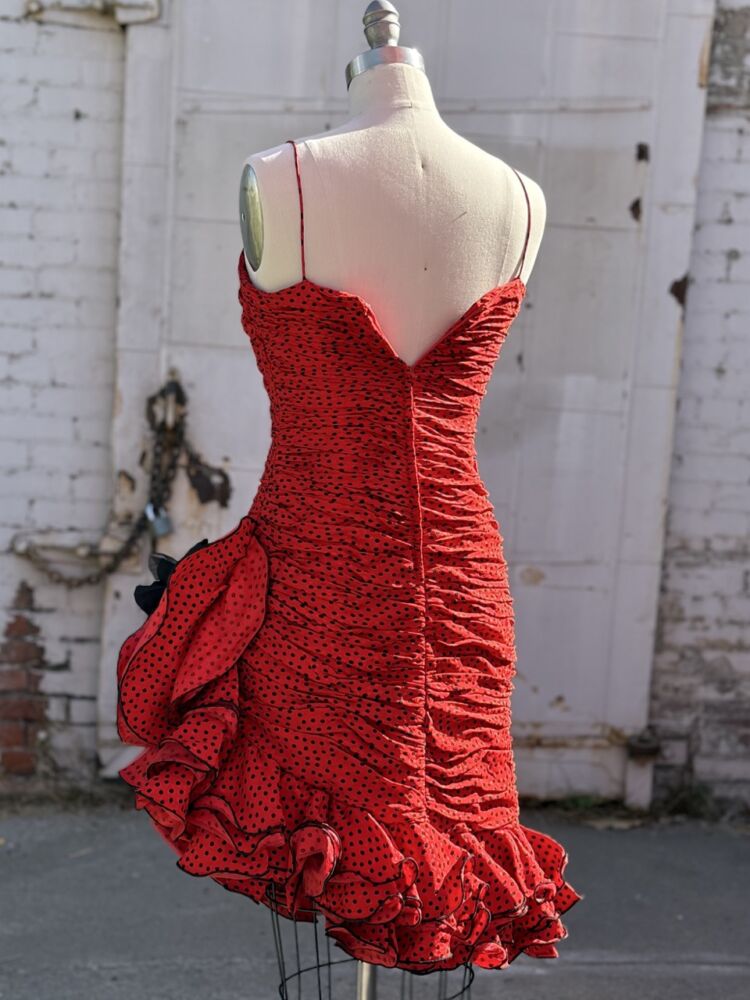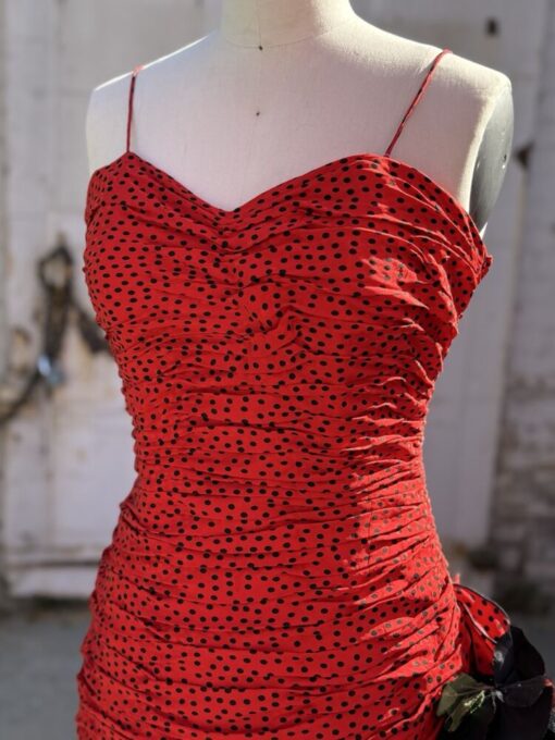 Vintage 1980s from Evenings by Raul Blanco Ruched Red Polka Dot Dress.