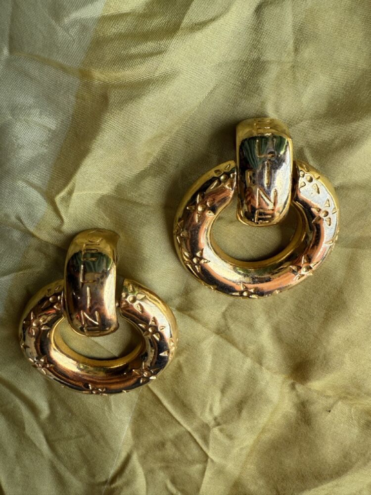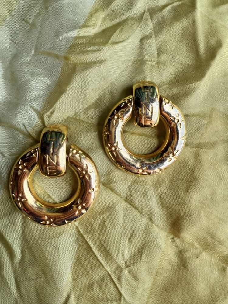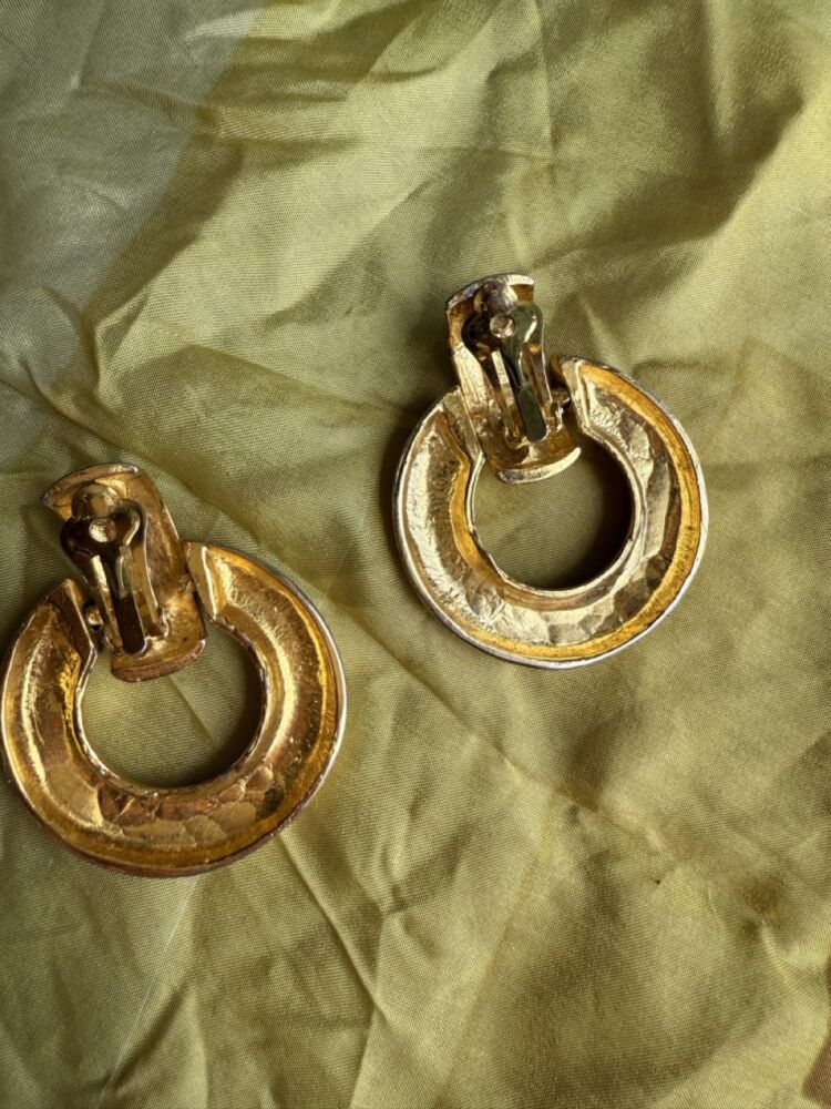 Vintage 90s Chunky Gold Clip on Hoop Earrings by Celine