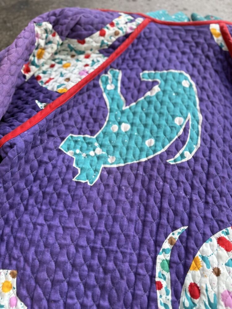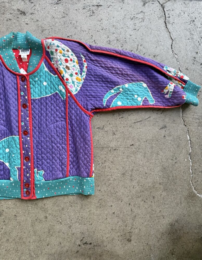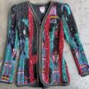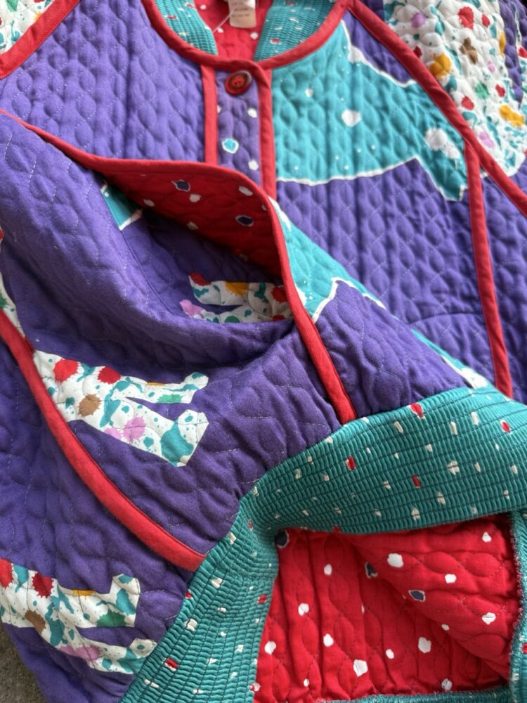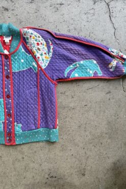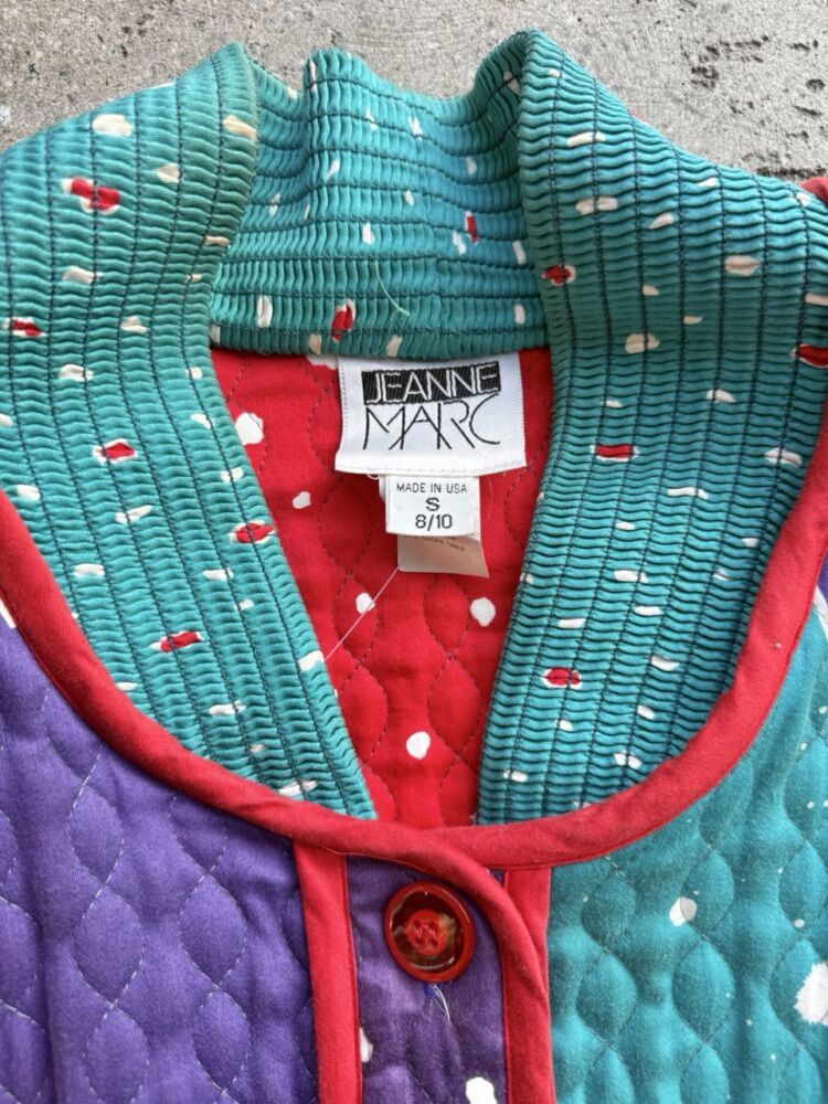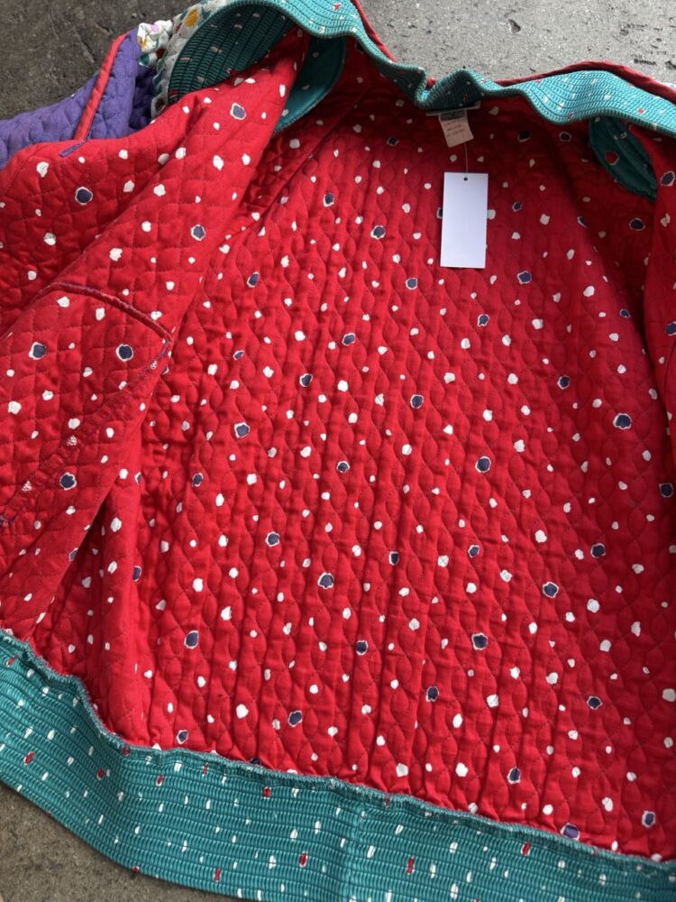 Colorful Dog Print Pattern, with Contrast Red Piping, and Red Tinted Clear Buttons. Two front Pockets