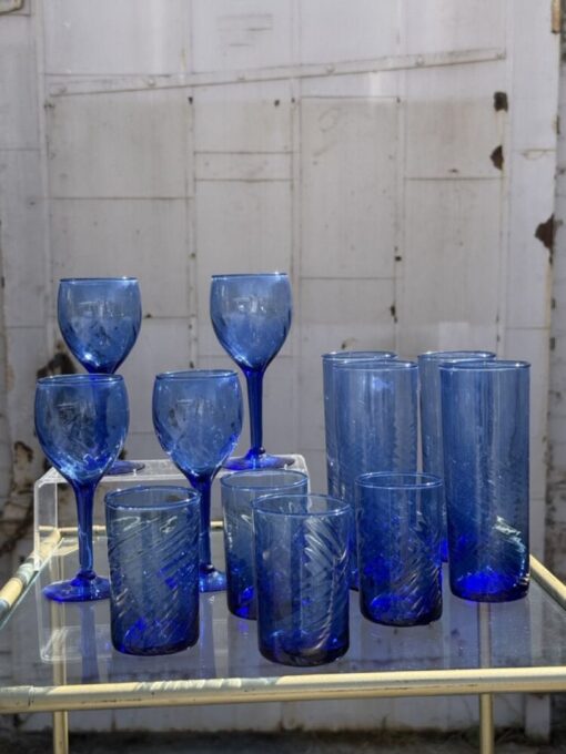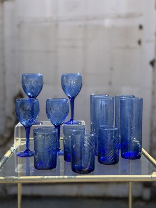 Set of 12 Vintage Swirl Blown Glassware