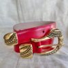 Vintage 80s Lady Captiva Red Leather and Brass Belt
