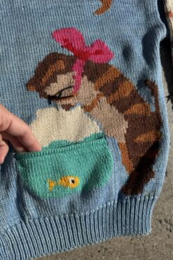 Vintage Christine Foley Cat Cardigan Sweater 100% Cotton Knit