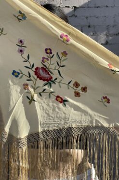 Lovely embroidered cream shawl/throw with colorful embroidered flowers. Can be styled worn around the shoulders or tied as a top.