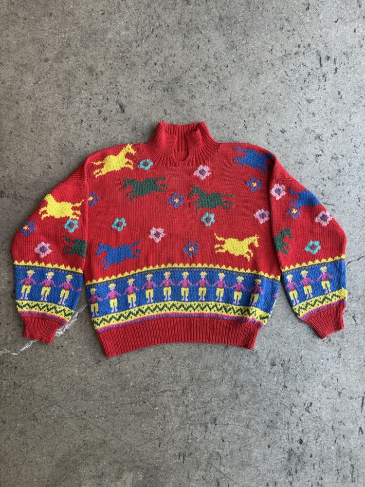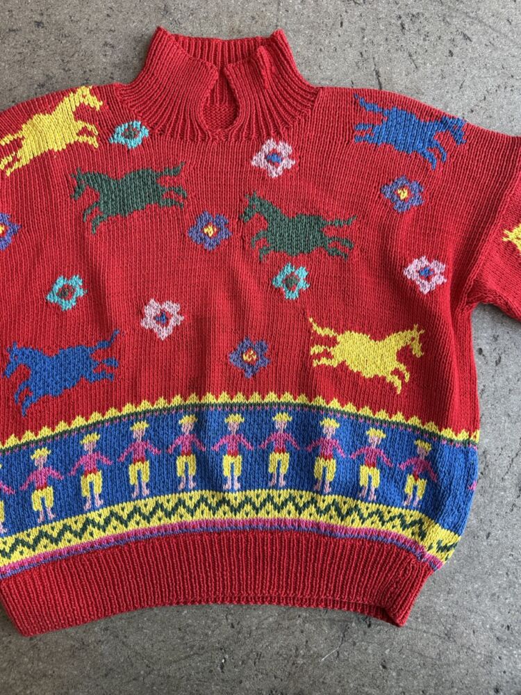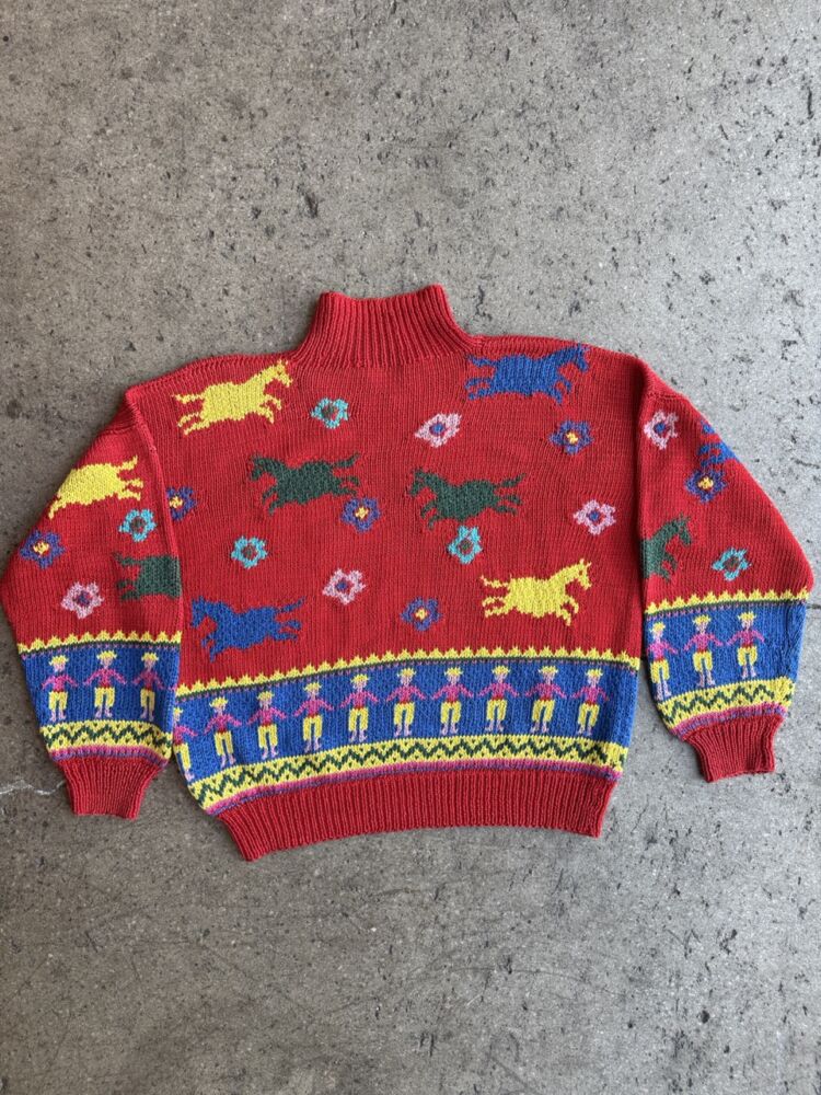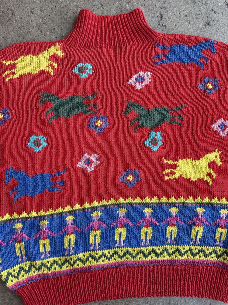 Vintage Hand Knit Wild Horses Sweater- M