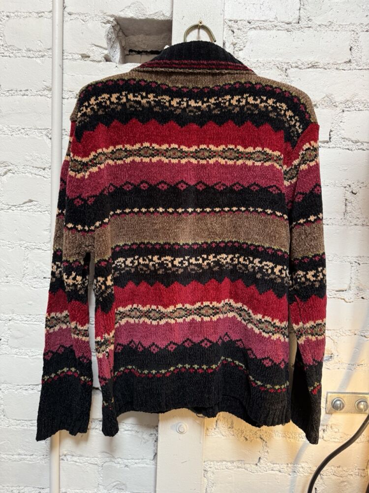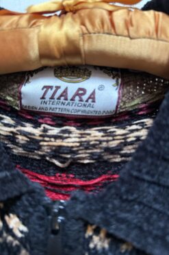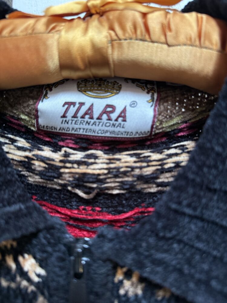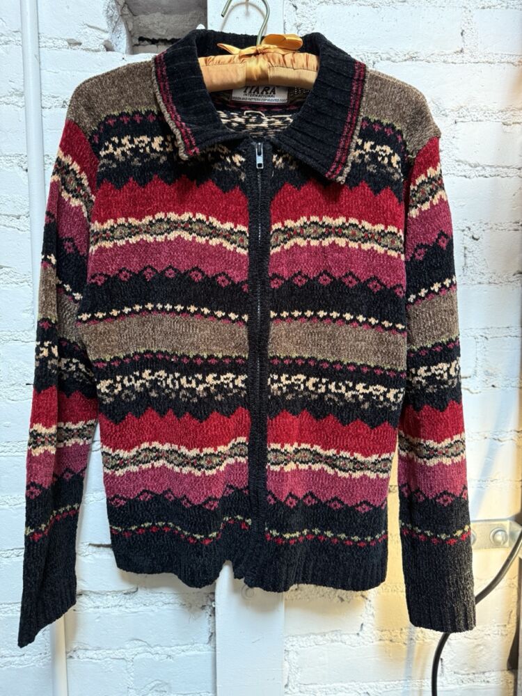 Vintage from 1990s by Tiara, Features patterned stripes in tones of red, green, and brown