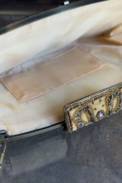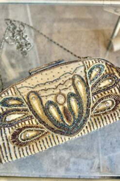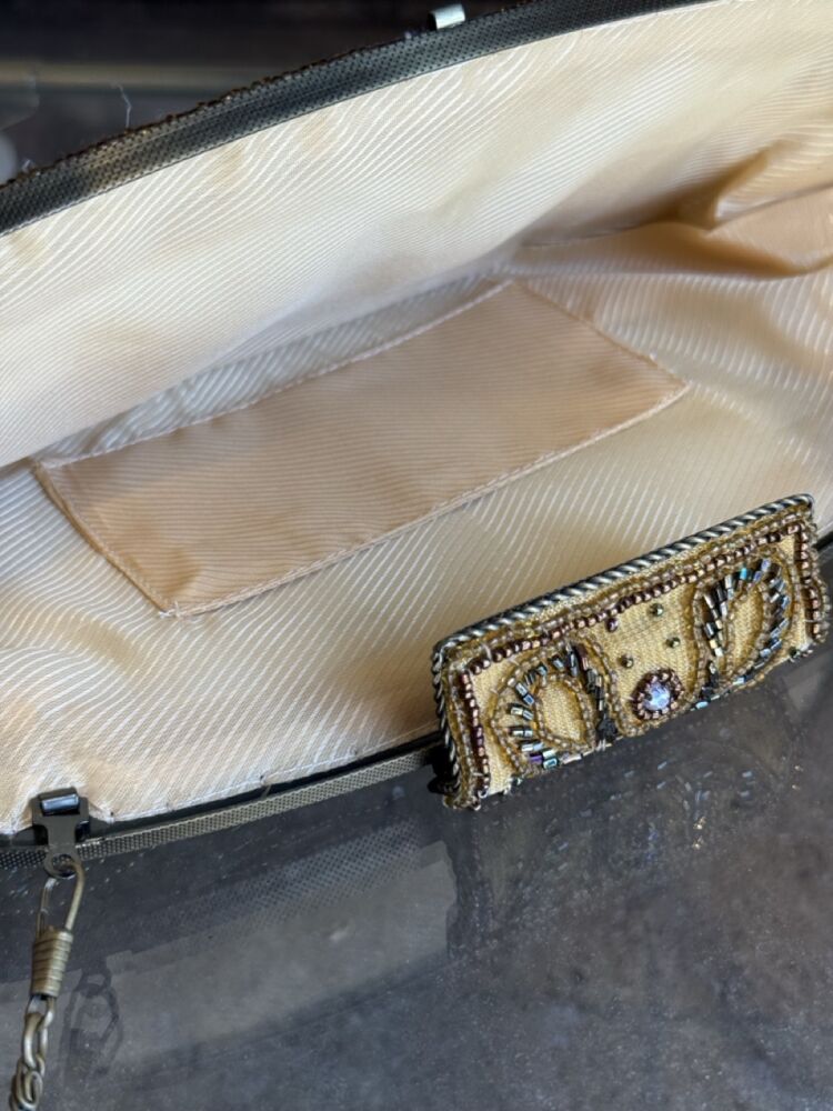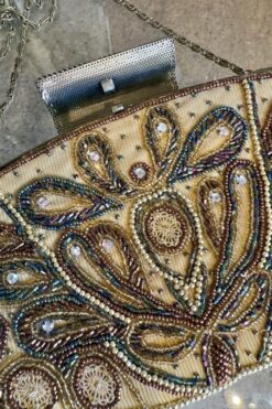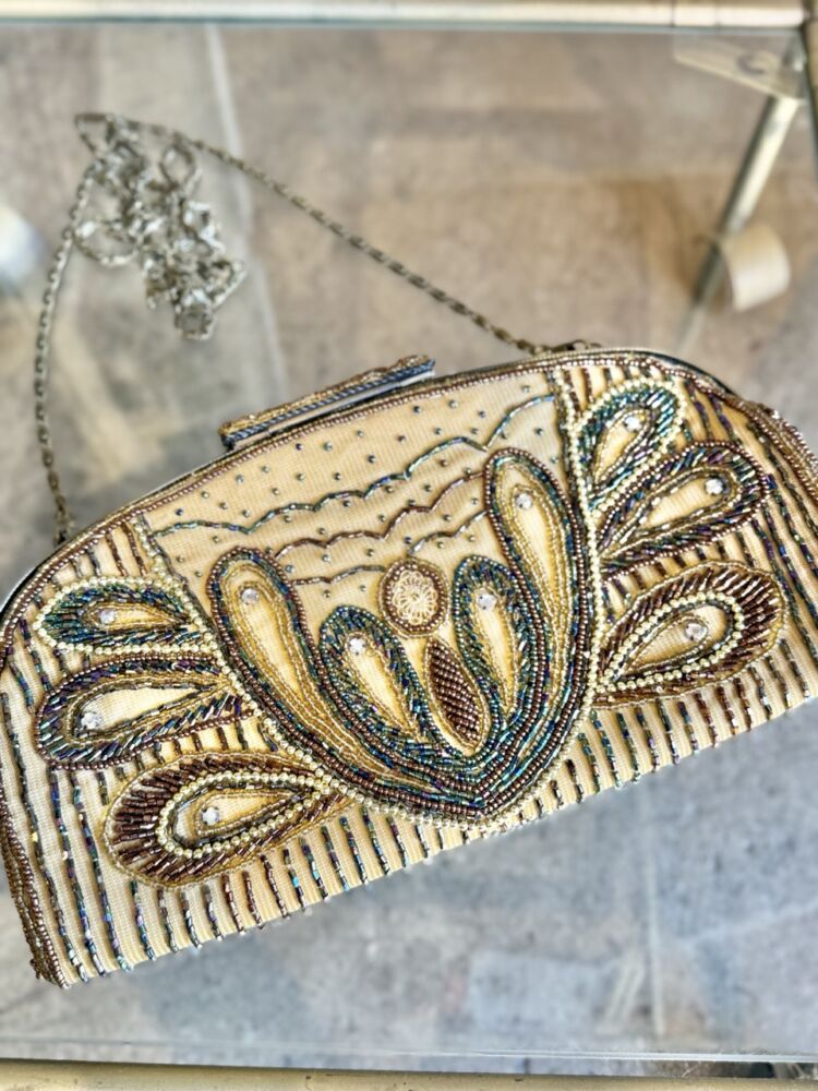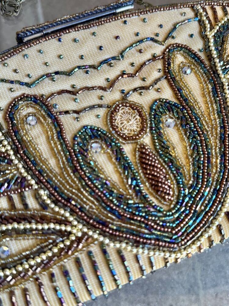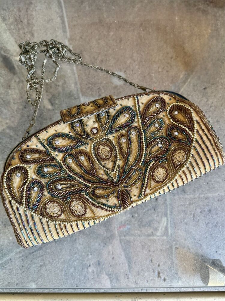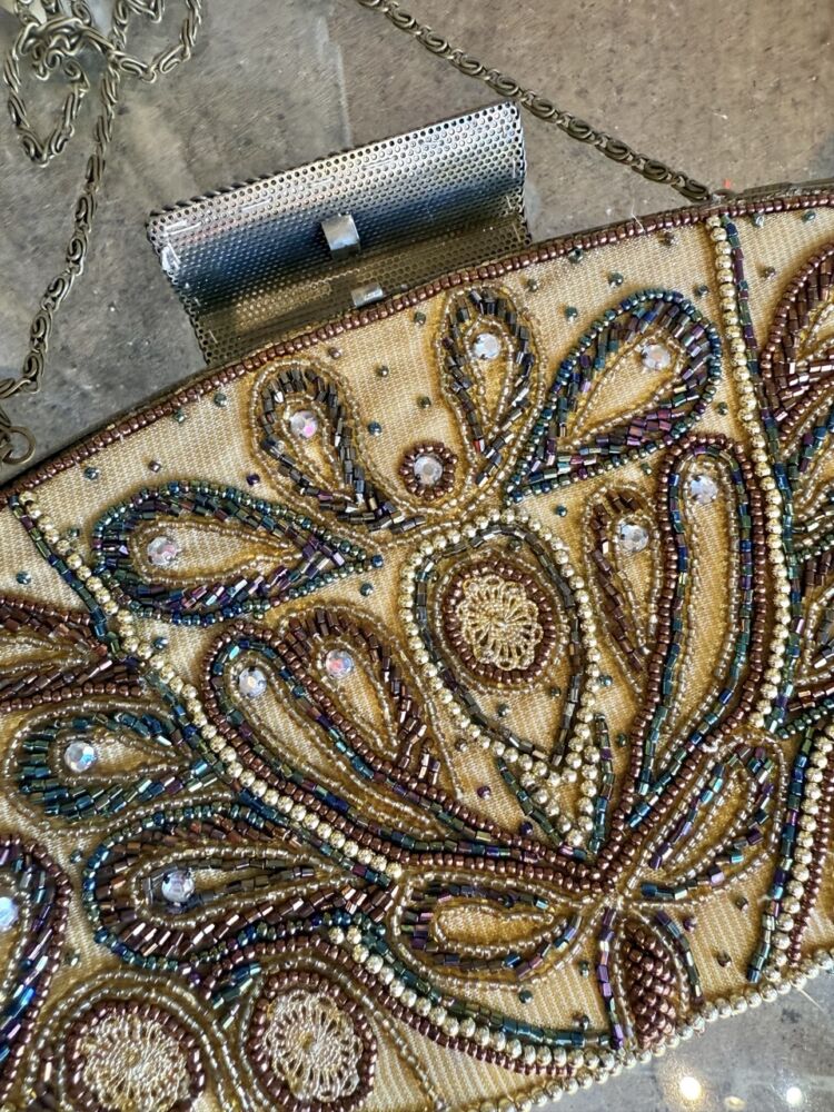 Vintage from 2000s beaded clutch, features chain strap, clasp closure and intricate beaded design
