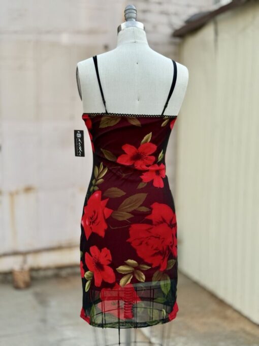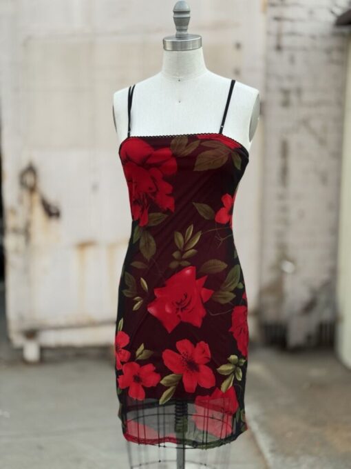 Y2k Era Stretchy Rose Floral Print Dress by Charlotte Russe. Has adjustable slider Straps, eyelet trim, and full lining. Tag reads Made in USA, Size Small